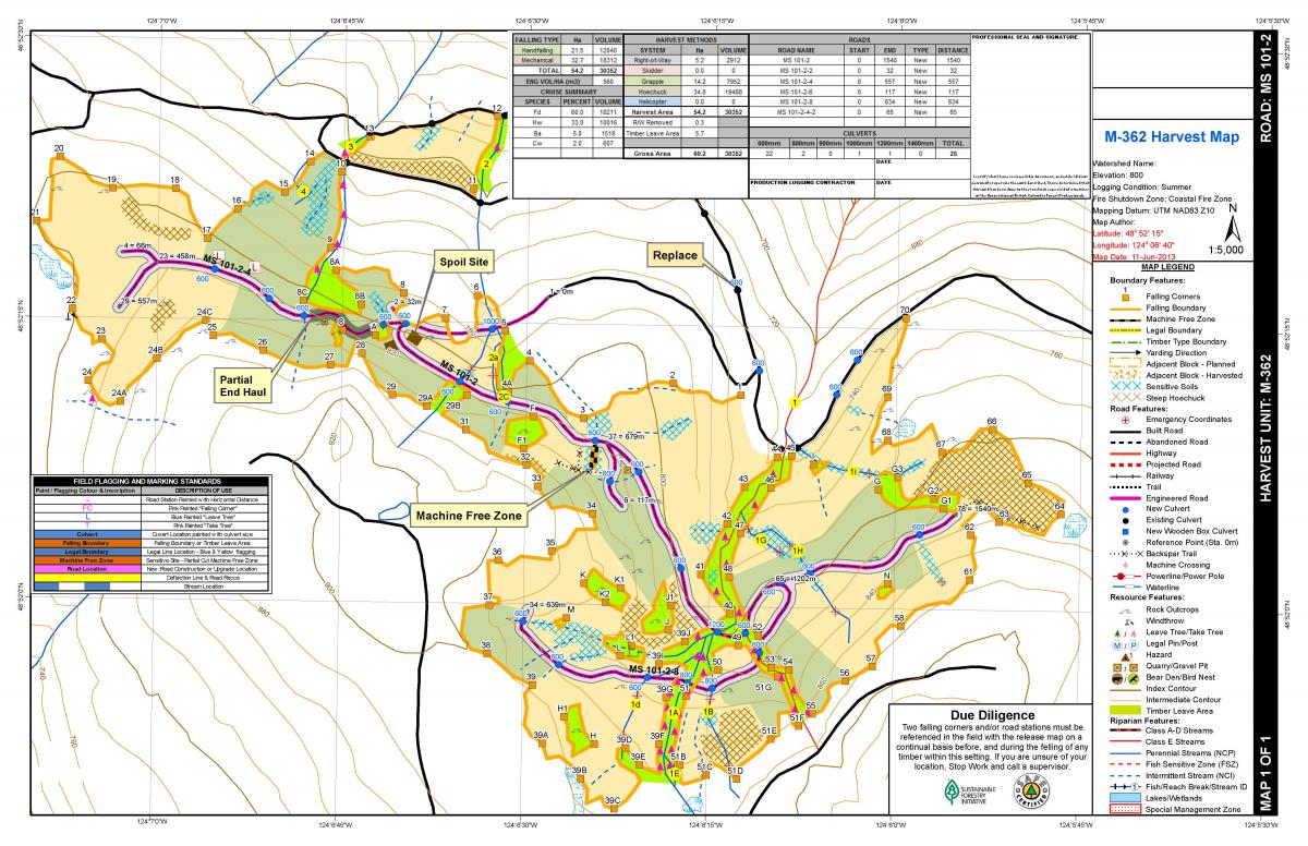 - Operational mapping for cutblock layout - including Harvest & Road Plan\Permit, Appraisal, Site Plan, Timber Cruise, and Detailed and Overview Location Maps